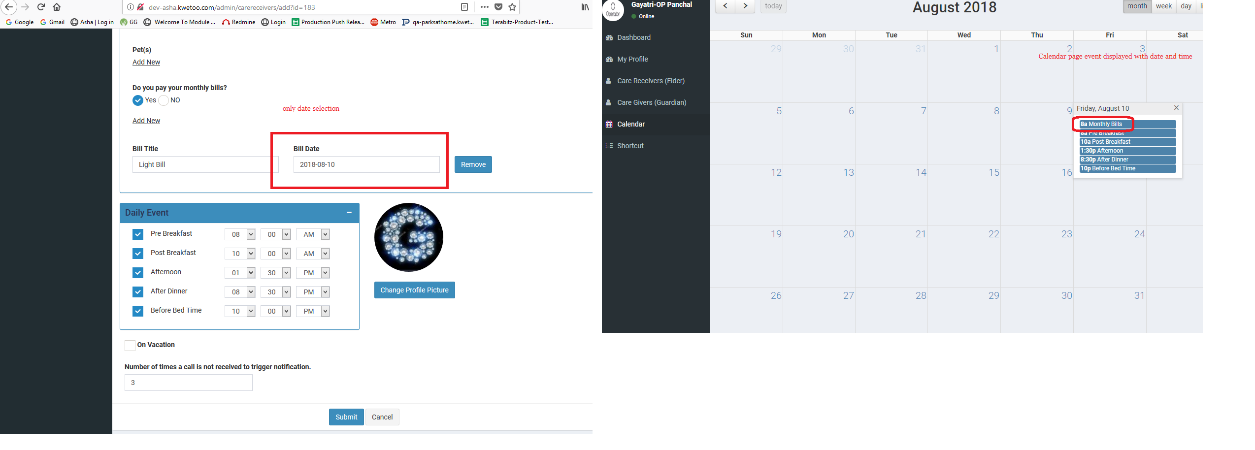 | Steps to reproduce: | Refer attachment | User Type: | Care Receiver admin | |